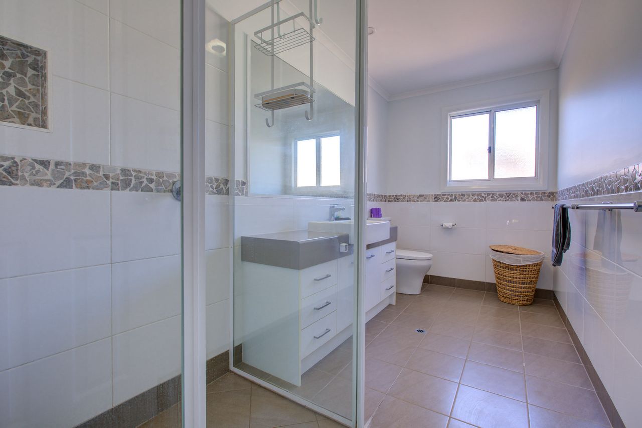 There is one family sized bathroom, with shower, toilet and vanity. There is also a second toilet off the living area.