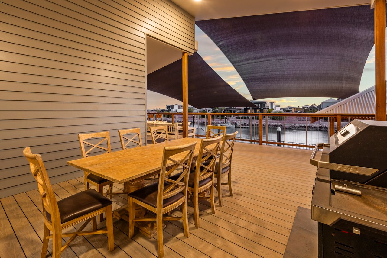 There is a deck, opening out from the main living area equipped with a family sized BBQ and spacious outdoor dining, allowing you and your family a full view of the Canals day and night.