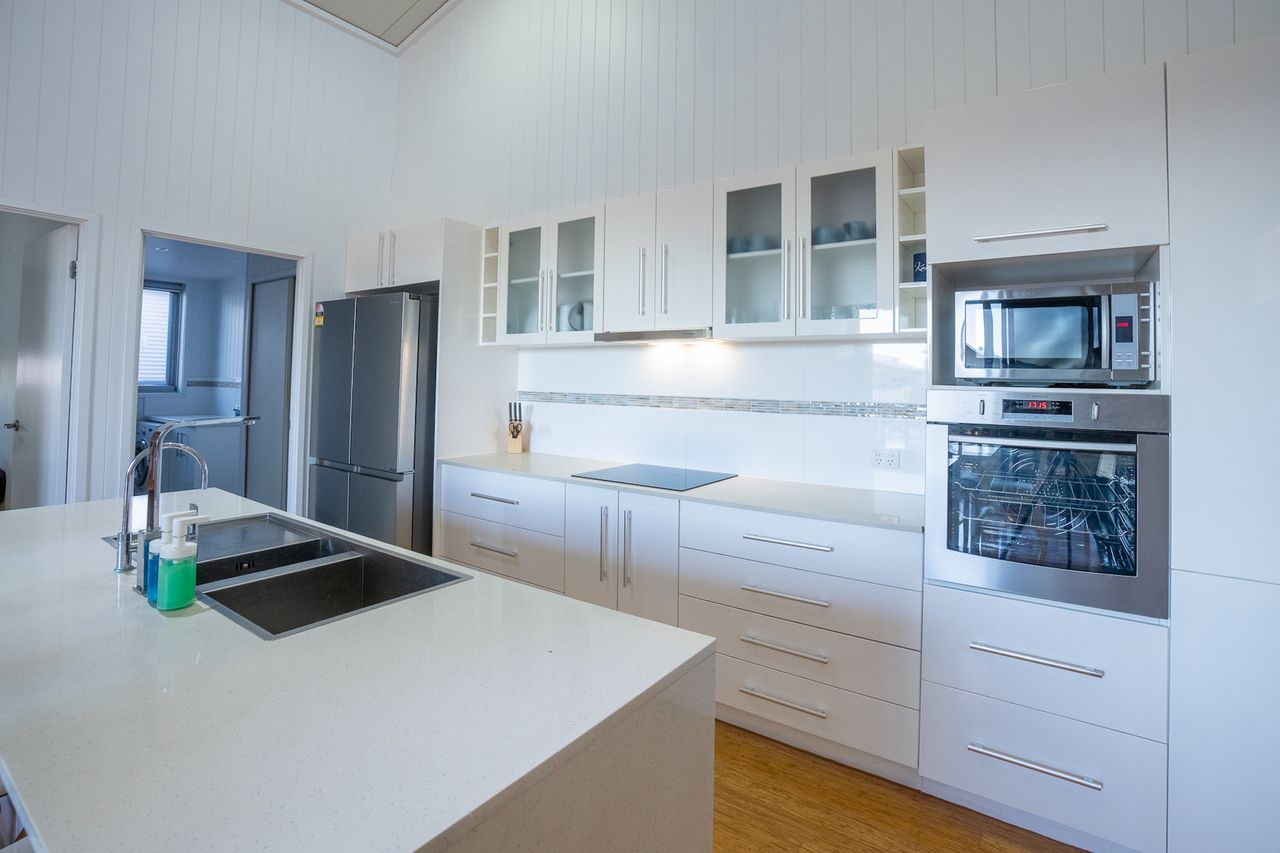 Bonefish has an open plan kitchen, seperate lounge and plenty of parking out the front. Each room facing the canal has either a large window or door to open up to the outdoors and enjoy the sea breezes and views.