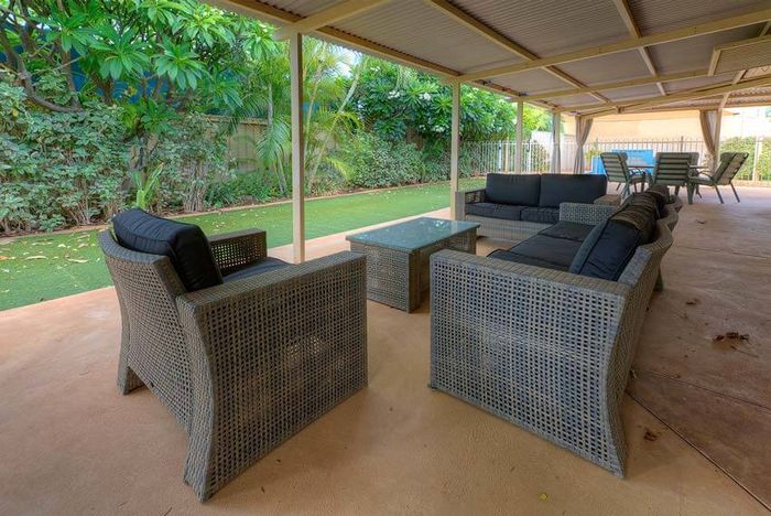 Lounge by the swimming pool in the tropical garden landscape. With masses of parking, a secure yard, and lots of outside verandah area.